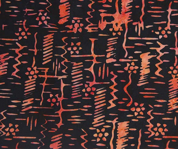 Shadows is offered in two colors, Licorice and Vanilla, or black and white. Typically, a black batik has a flat look to it, there are so many colors used to achieve black that sometimes it can look like it reads green, blue or even gray. In most art forms, black tends to drain the colors from its surrounding parts. I wanted a black that wouldn’t do this, so this black has lots of the greens, blues and grays in it, but also has movement on its own. I applied the same concepts for the white batik. Since White on White is already a sharp white, I needed a soft white to go with most of the batik tones.